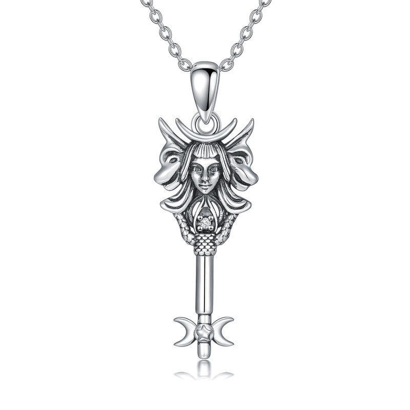 - Material: This Hecate necklace is made of sterling silver, which is rust-proof, nickel-free, lead-free, cadmium-free and hypoallergenic. The Hecate pendant will not lose its luster or fade over time. The pendant is made of vintage oxidation technology, and both the image of the goddess Hecate and the image of the holy dog are carved very delicately. The pendant is in the shape of a key, and the logo of the triple moon goddess is also engraved on the bottom.