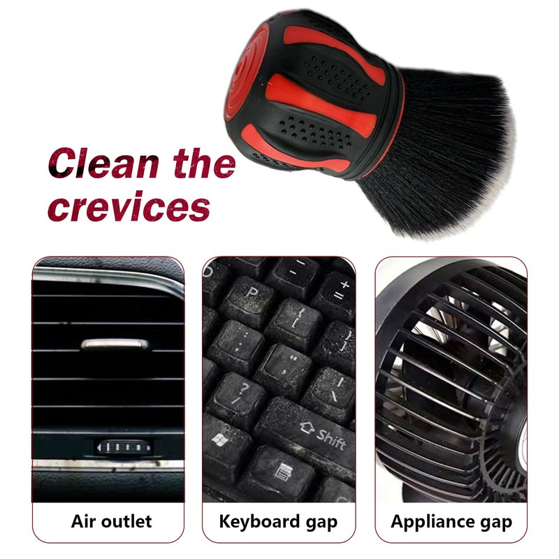 leechio 1 PC Spherical Ultra Soft Detail Brush, Ultra Soft Bristles with Handle Synthetic Brush, Interior Air Conditioning Vent Cleaning Brush, Universal for Most Cars, Trucks, SUVs (Red)
