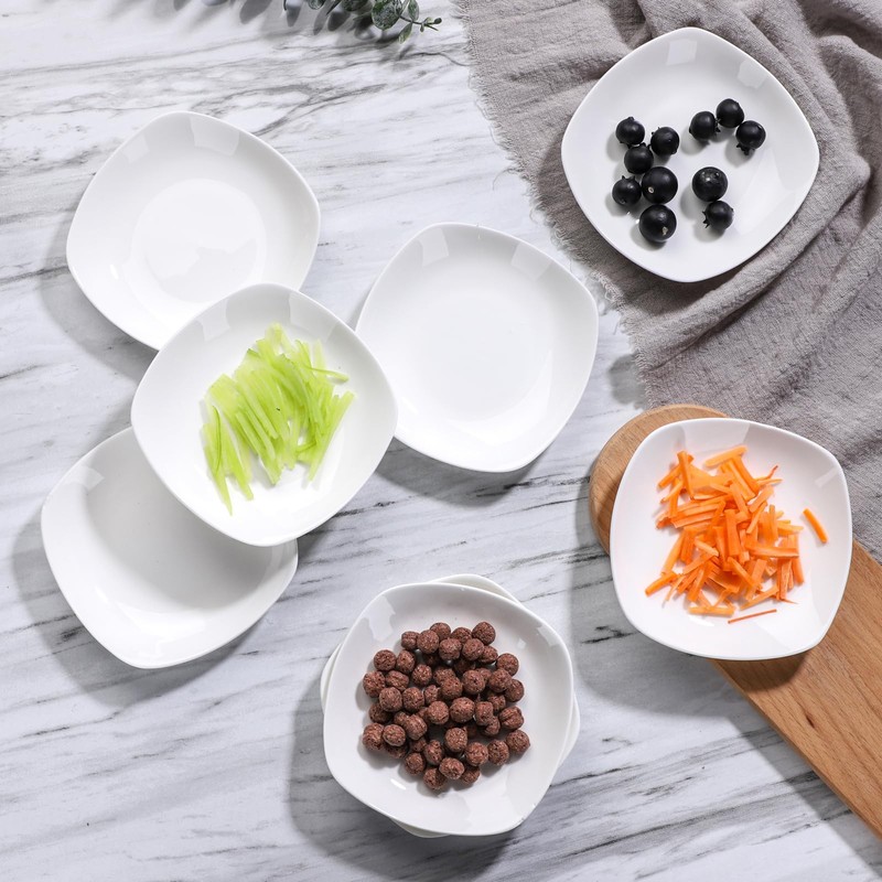 Leegg Dipping Sauce Dishes Set of 8 Small Ceramic Serving Plates for Appertizer Sushi Dessert Fruits (White Square)