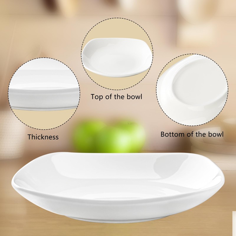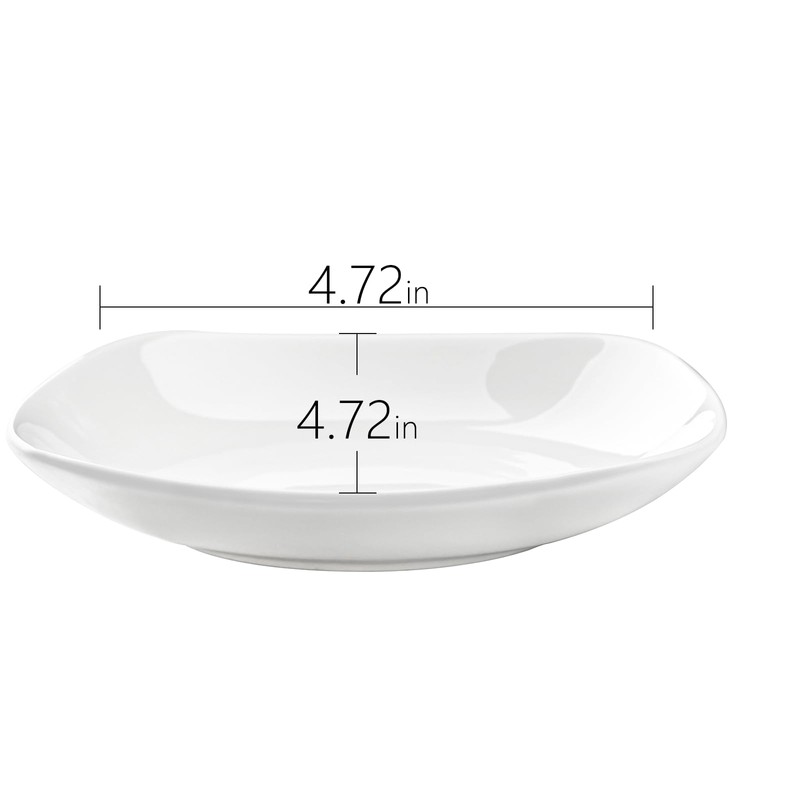 - Each square snack bowl is about 4.72 inches in width. A good size for serving various sauces, hot mustard or soy sauce along with the meal