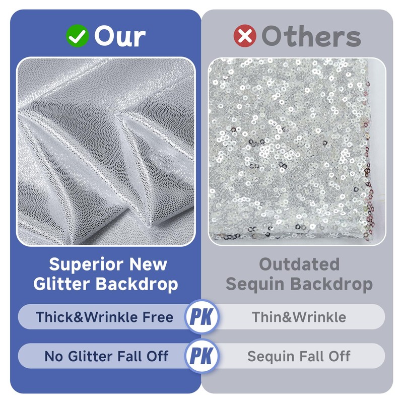 - New Glitter Thick Backdrop Cloth: Made of soft and smooth polyester fabric and glitter, more superior than ordinary sequin backdrop curtains. It's more thick and not falling off sequins, make your parties more charming and sparkling.