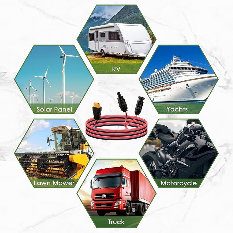 - Universal XT60 adapter extension cable: This versatile XT60 extension cable for solar panels is compatible with all major power plants, including EcoFlow, Bluetti and anchor systems, and works seamlessly with solar generators, batteries and all devices with XT60 connectors.