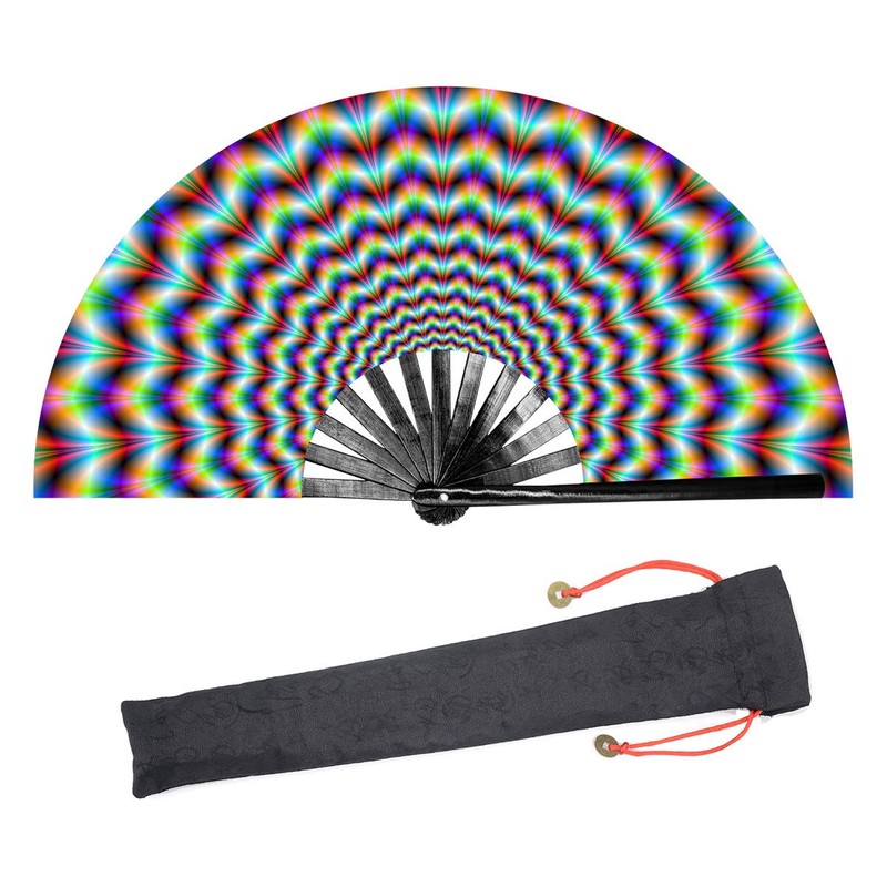 Leehome Large Rave Folding Hand Fan for Women/Men,Chinese/Japanese with Bamboo and Nylon-Cloth Handheld Fan,for Performance,Decorations, Dance,Festival Party,Gift (Trippy)