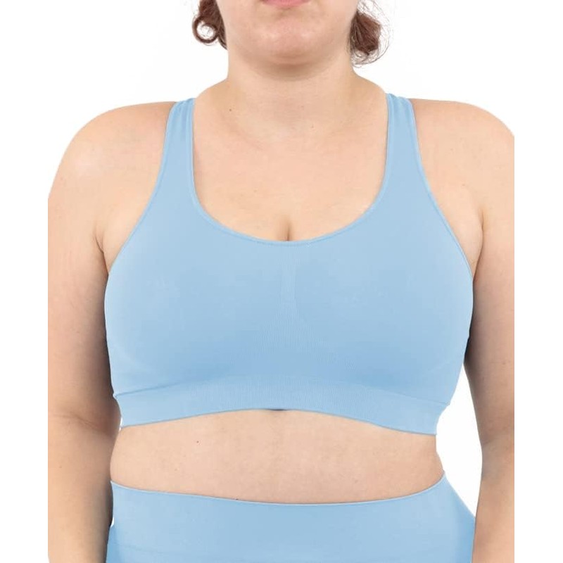 LEELA LAB Women's Bralette Non-Wired Bra Provides Support Without Tension, with Seamless Technology - Made in Italy, Desaturated Blue