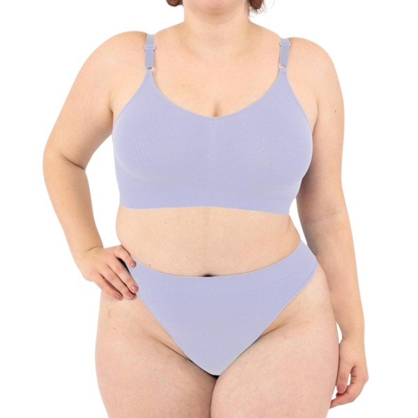 LEELA LAB Women's Non-Wired Bra, Large Sizes, Comfortable and Versatile with Adjustable Straps, Seamless Technology, Made in Italy, fliederfarben