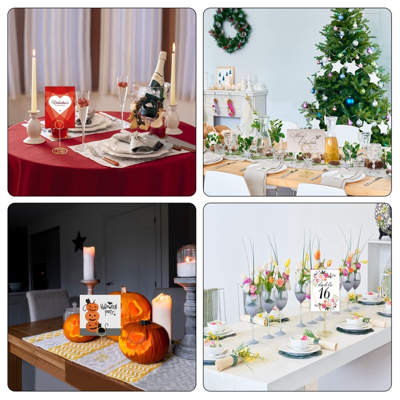 - 【Sturdy Material】: Wedding table numbers holder are made of high-quality plating iron wire, durable and beautiful. Table number holder stand is designed widened spiral base to ensure stand steadily. Note: If table card holder is used on a windy day which best to put some small heavy objects on the base.