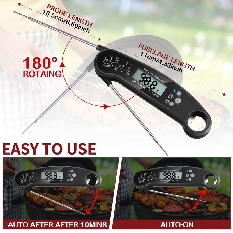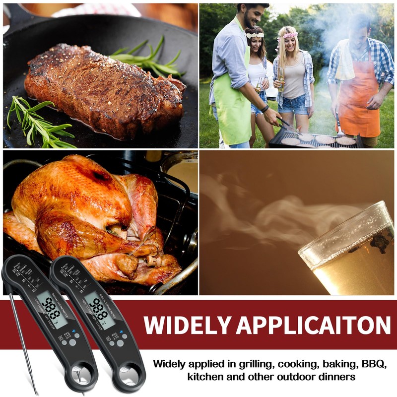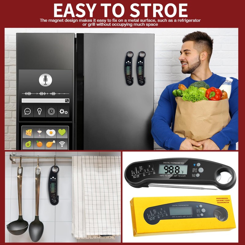 - Easy to Store: the read food thermometer is designed with a foldable probe, so when you're not using it, you can fold it up, and the magnet design makes it easy to fix on a metal surface, such as a refrigerator or grill without occupying much space