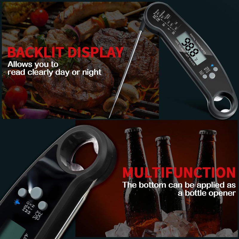 - Wide Functions: the read meat thermometer is waterproof for your daily cleaning and the bottom can be applied as a bottle opener, besides, the design of the light screen helps you to quick and accurate reading, bringing you a pleasant using experience
