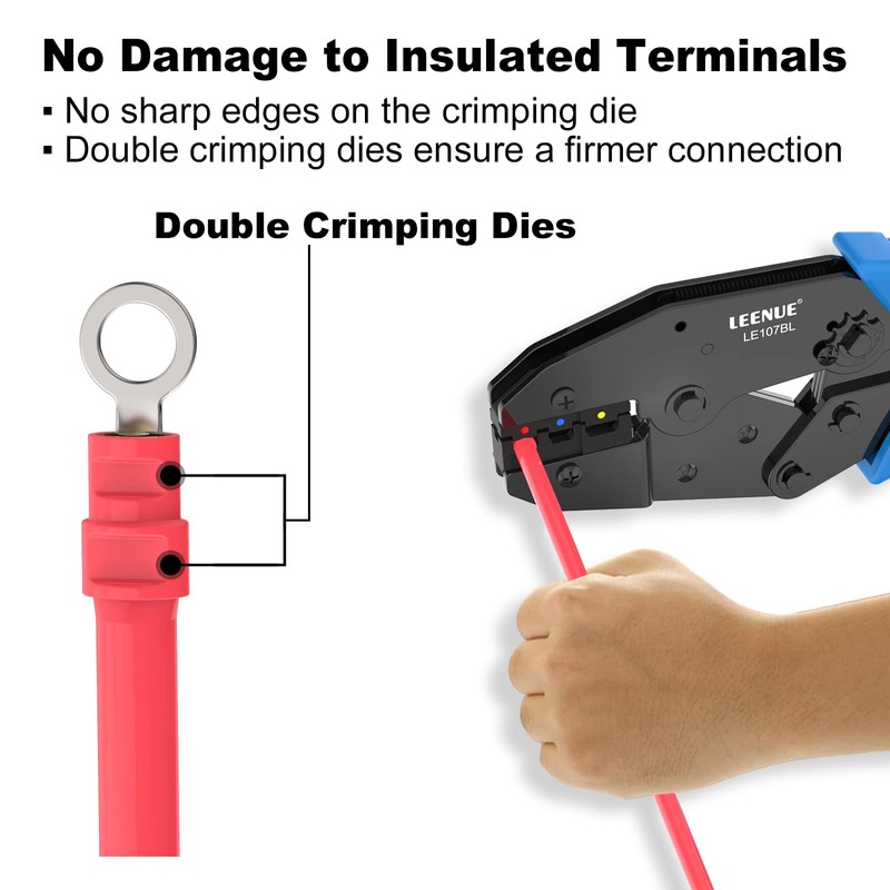 LEENUE Wire Crimping Tool, Ratchet Crimping Tool for Insulated Terminal Connectors 10-22 AWG (0,5-6mm²), Wire Crimper for Electrical and Mechanical Work