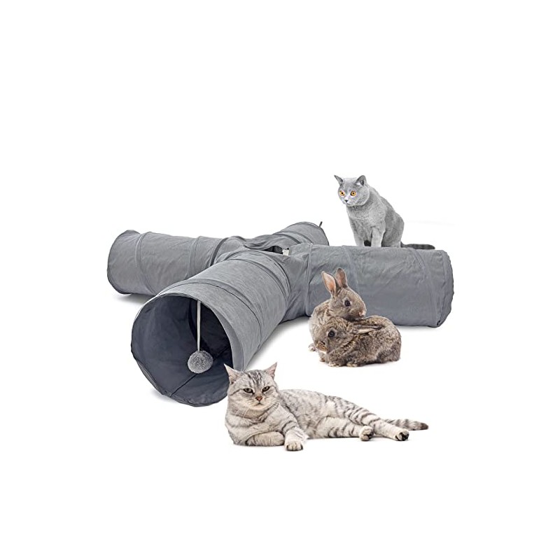 LeerKing Cat Tunnel 4 Way for Indoor Cats Rabbit Puppy with Play Ball Peek Hole Collapsible Pet Kitten Play Toy Tubes Dia 10"