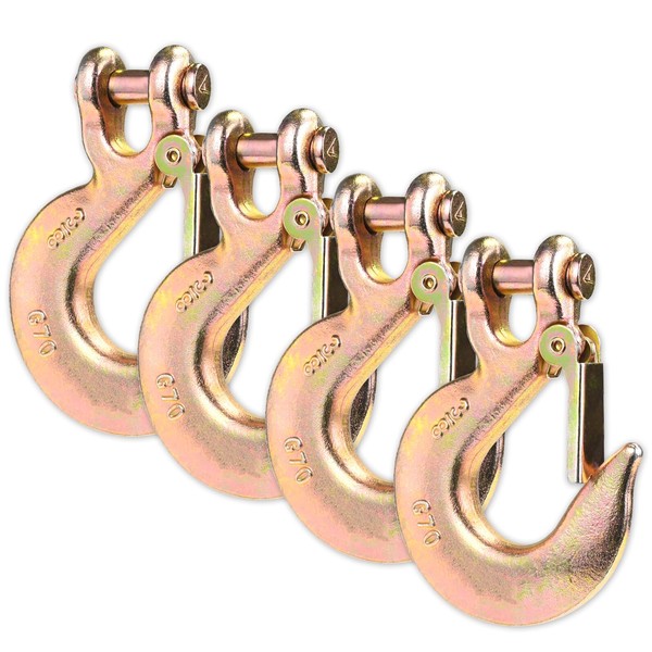 Leero 3/8'' Clevis Slip Hook with Safety Latch, 18,000 Lbs Capacity G70 Hook for Towing and Chain, Heavy Duty Forged Steel Tow Winch Hook for Trailer Truck Transport(4 Pack)