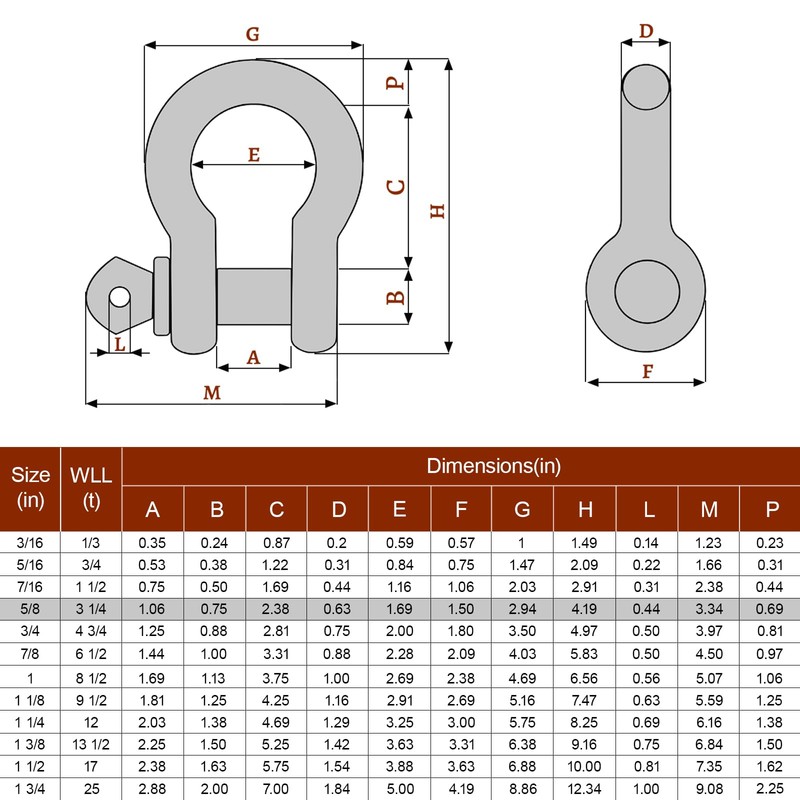 - WORKING LOAD: Heavy Duty 5/8'' Shackle Working Load Limit is 7,165 Lbs(3.25 tons), Maximum Breaking Strength is 42,990 Lbs (19.5 tons)