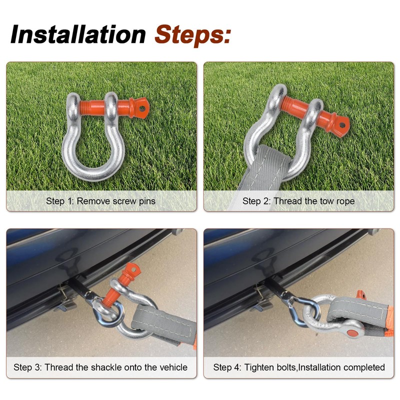 - VERSATILE USE: D-Ring Anchor Shackle Can Be Used in Conjunction with Tow Straps, Grab Straps, For Jeeps, Suvs, Trucks, Atvs, Trailers, And Sport Utility Vehicles, Making Them Ideal for Automotive Recovery, Tie-Down, And Towing Operations