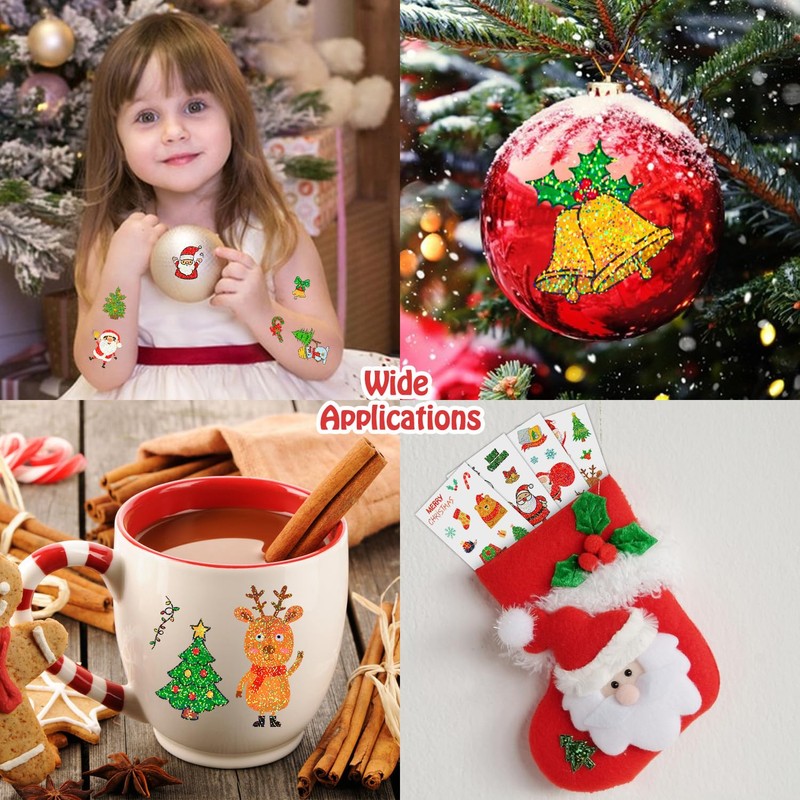 - 【Wide Uses】You can stick these cute fake tattoos on your face or body to get fun; also you can use them to decorate smooth party objects to add more more holiday atmosphere for your christmas party. The size of the tattoo is perfect to put into all kinds of christmas party bags.
