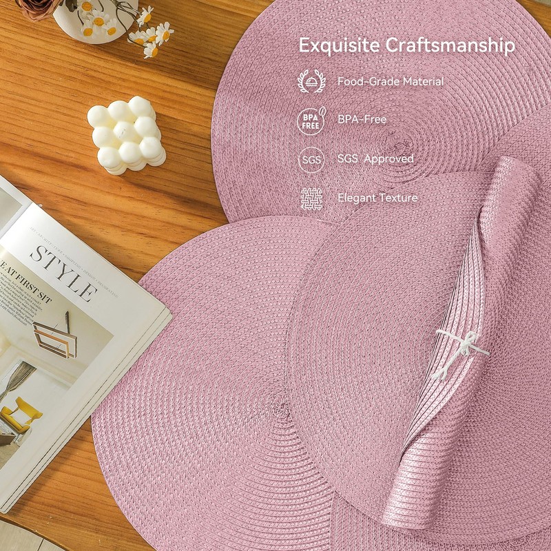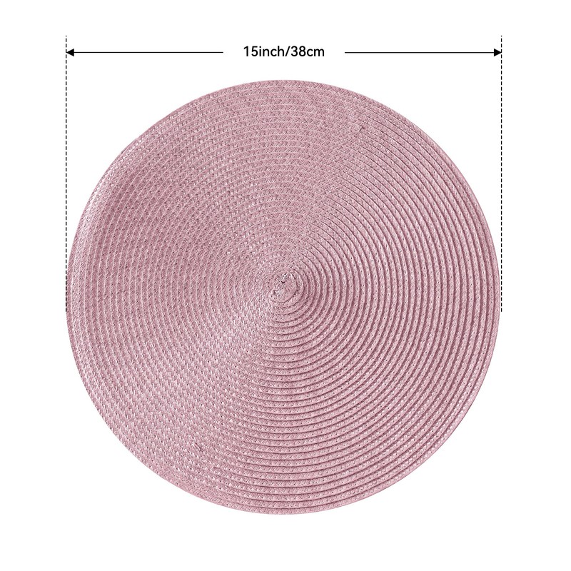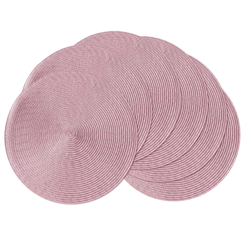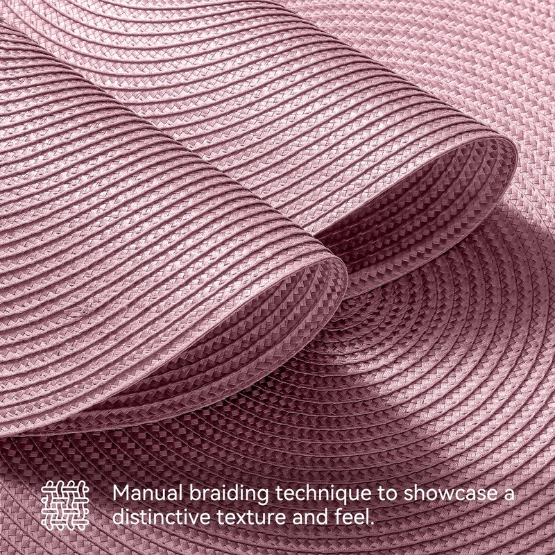 Leetaltree Round Placemats Set of 6 - Washable Woven Non-Slip Round Table Mats,15-Inch Heat Resistant Table Placemats,Pink