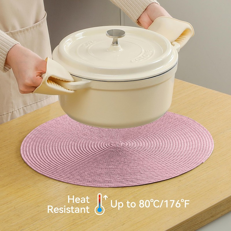 - Protect Your Dining Table: Our placemats can withstand temperatures up to 176°F (80°C), protecting your table from stains, hot food, or scratches from tableware. With a diameter of 15 inches, they perfectly fit a variety of tableware.