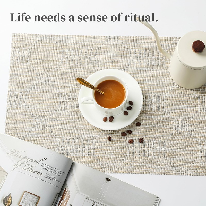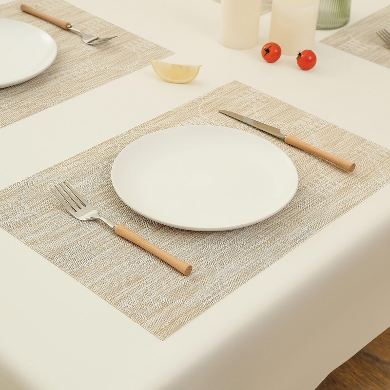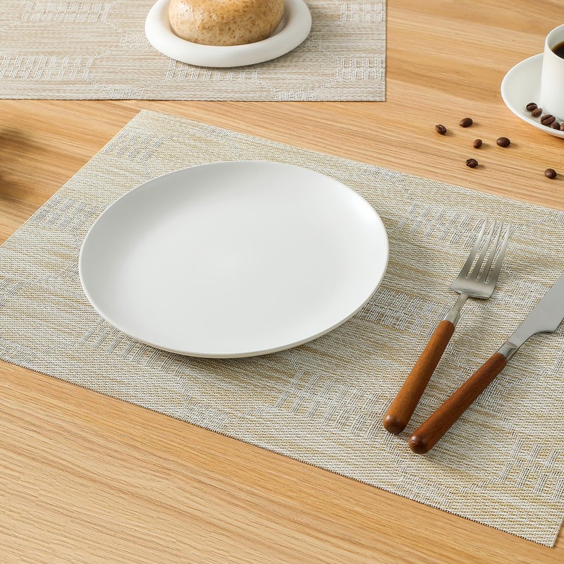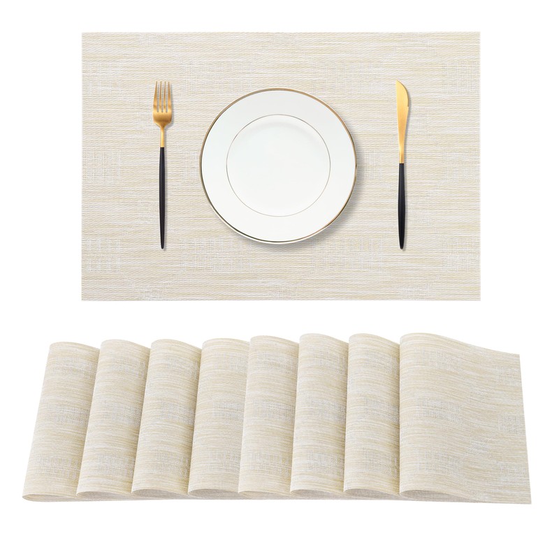 Leetaltree Wheat Placemats Set of 8 - Heat Resistant Non-Slip Place mats for Dining Table, Washable Durable PVC Vinyl Woven Table Mats(Wheat, 8)