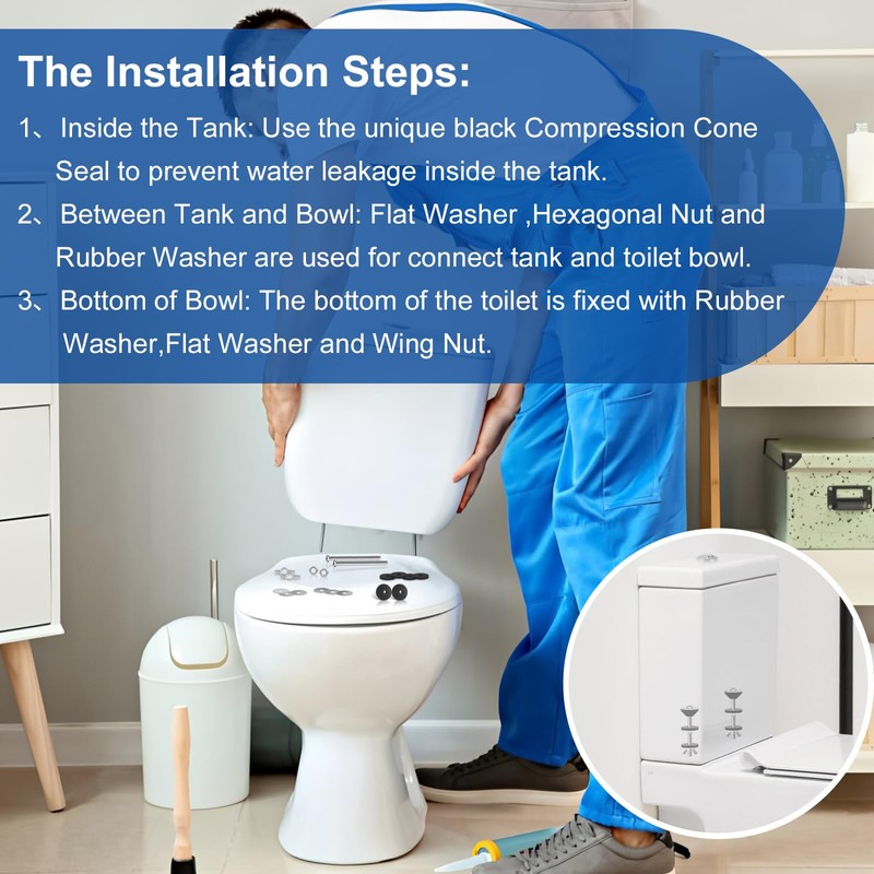- π£π₯π’π§πππ§ππ’π‘ π§π’ π§π’ππππ§:The rubber cushioning washers in the toilet seat screws will not damage the tank or toilet base. Have a good performance on making a secure and watertight connection between toilet tank and bowl.
