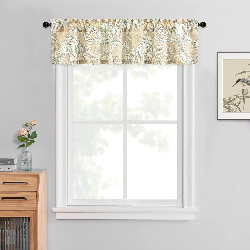 Leeva - Cenefa floral clásico para ventanas - Tratamiento de ventana con textura de lino filtrante de luz con bolsillo para barra, cortina decorativa de granja para cocina y recámara, 52 pulgadas de