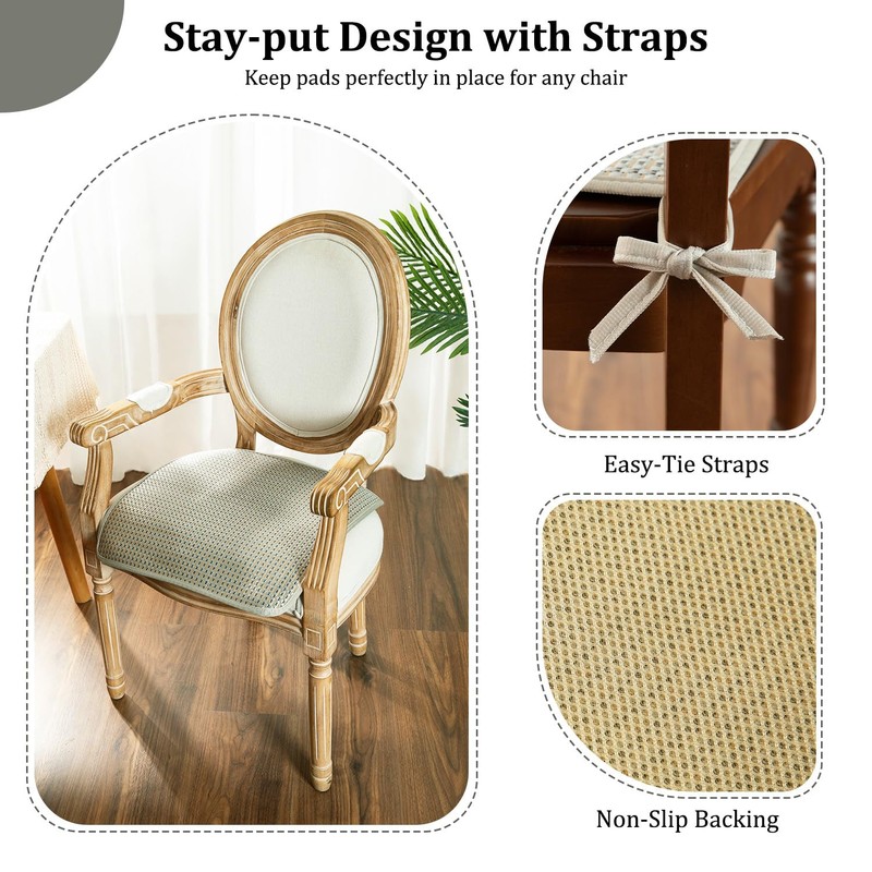 - Multi-Scene Function: Universal 18"x18" square fits dining chairs, office seats, and kitchen stools. Dual tie straps secure firmly without slipping