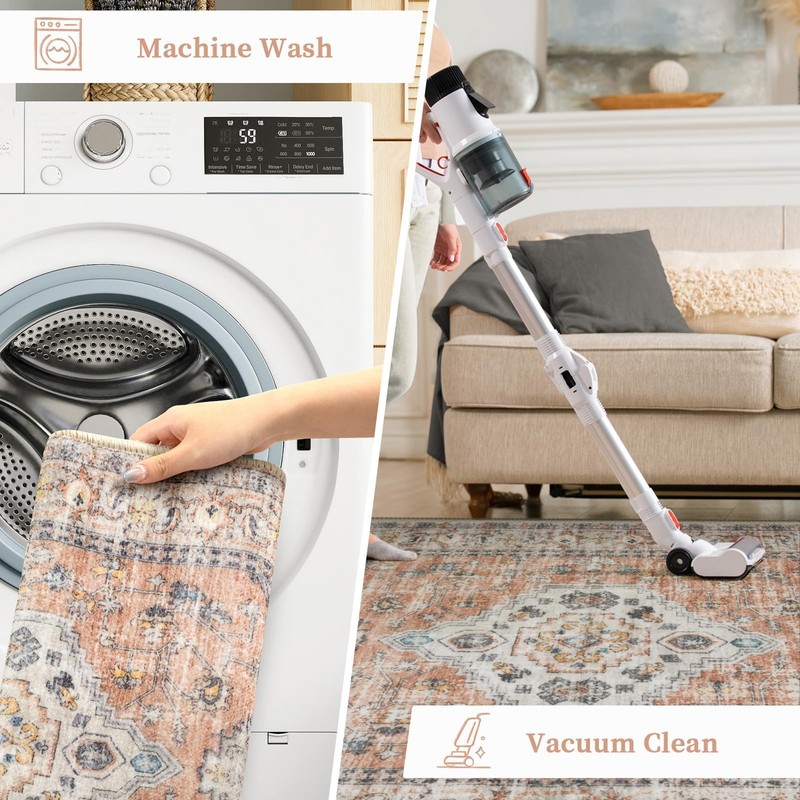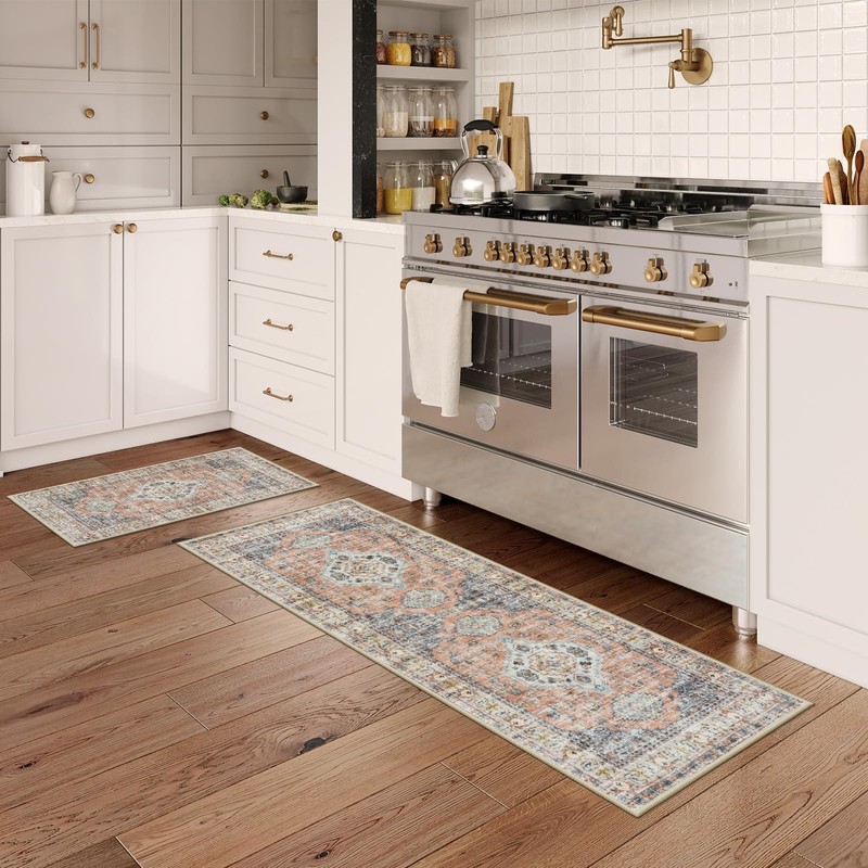 - Machine Washable: Shrink-resistant material allows cold, gentle machine washing (mild detergent) + air drying. Vacuum/shake daily to keep the kitchen rug debris-free