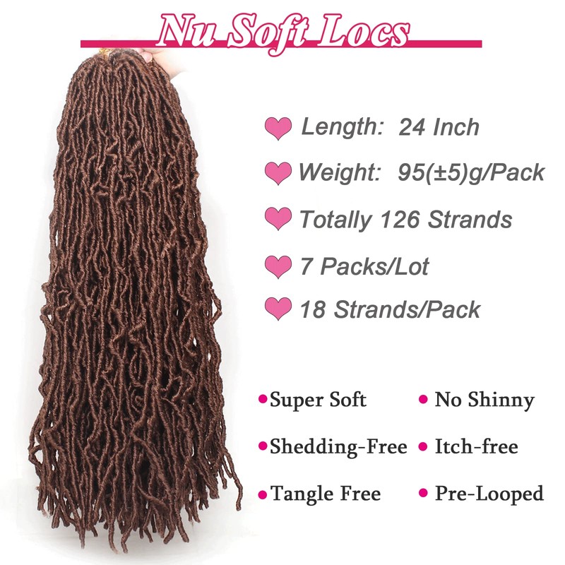 Feature: 24 inch new style soft locs crochet hair is pre-looped, light weight, easy to technique