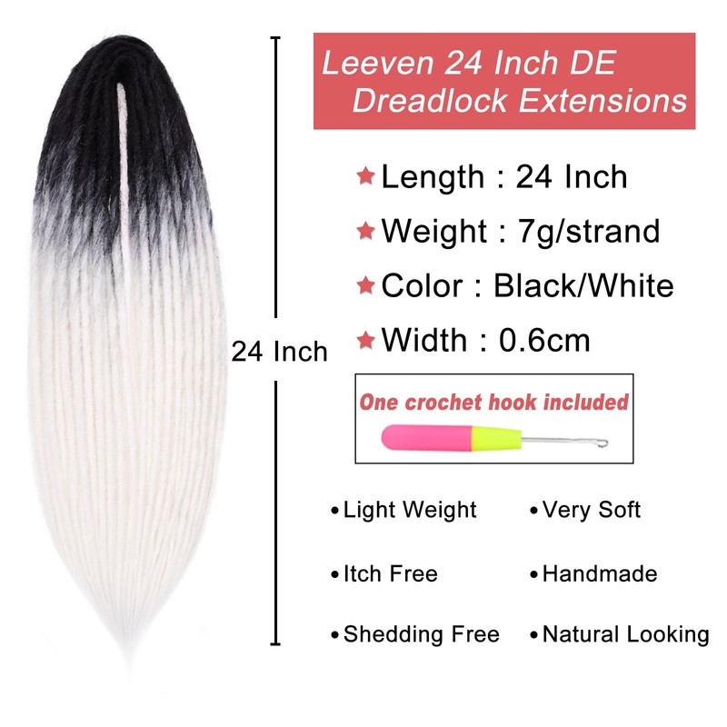 - 【Package】10 strands of 24 inch double ended dreads, 7g/strand. one free crochet hook. Usually 20-30 strands can make a full head.