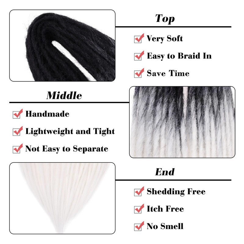 Leeven Double Ended Dreadlock Extensions 24 Inch Black to White Synthetic Crochet DE Dreads Extensions 10 Strands Handmade Soft Loc Extensions Reggae Style Hair for Women Men