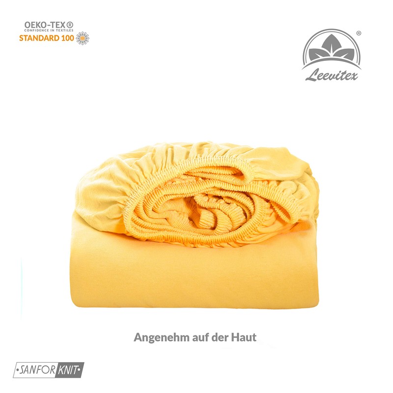 leevitex® Premium Children's Fitted Sheet, Set of 1, for Baby Cot and Cot, 70 x 140 cm, 100% High-Quality Mako Jersey Cotton, 170 g/m², Oeko-Tex Tested, Yellow