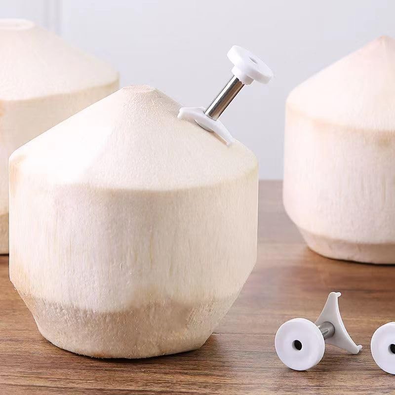 • Fácil de usar: simplemente inserta en el coco, golpea este abridor de coco 2 veces en la pared, mesa o lugar duro, haz un agujero en el coco e inserta una pajita para disfrutar del delicioso jugo de coco.