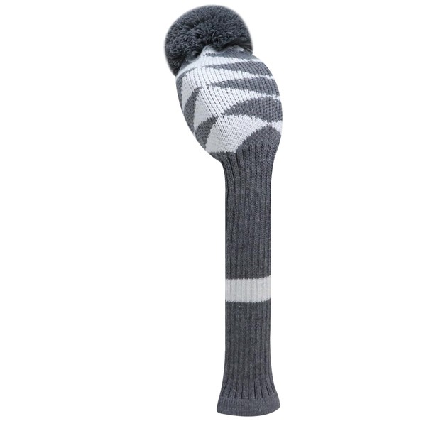 LeFeng ゴルフクラブカバー ニットゴルフヘッドカバー 460ccドライバーフェアウェイウッドとハイブリッド用 かわいいポンポンと数字タグ付き (グレーホワイト格子縞、フェアウェイ用) 1個