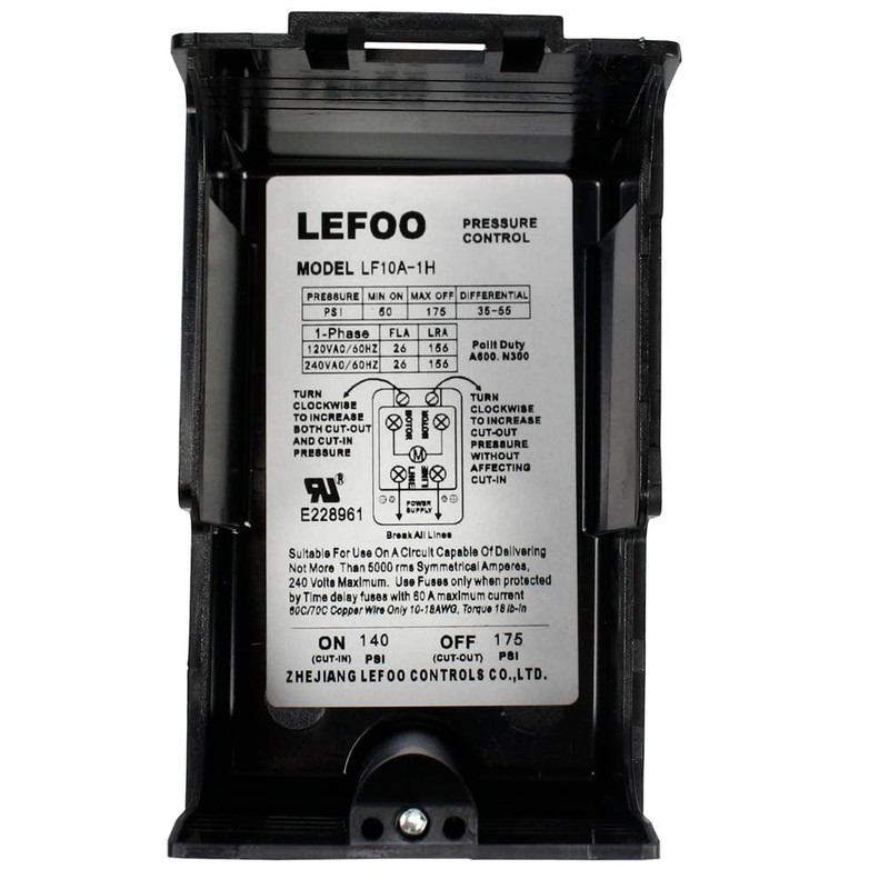 Lefoo Pressure Switch Control Air Compressor 140-175 Single Port Heavy Duty 26 Amp LF10A-1H-1-NPT1/4-140-175