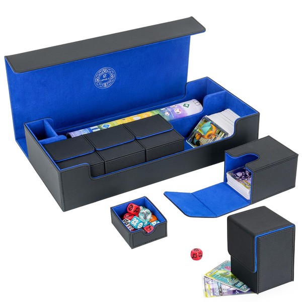 LEFOR·Z 6 in1 Card Deck Box Set,X-Large Premium Card Game Deck Storage Box with 5 Small Card Deck Case Compatible with MTG/TCG/Yugioh/Magic/Commander(Black&Blue)