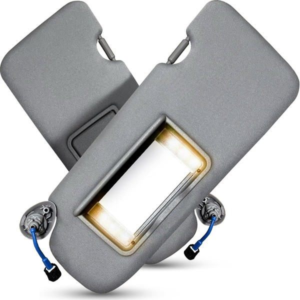 Left Driver & Right Passenger Side Sun Visor for Honda CRV 2017 2018 2019 2020 2021 2022 Replace 83280-TLY-H11ZB with Vanity Light/with Makeup Mirror (Grey)