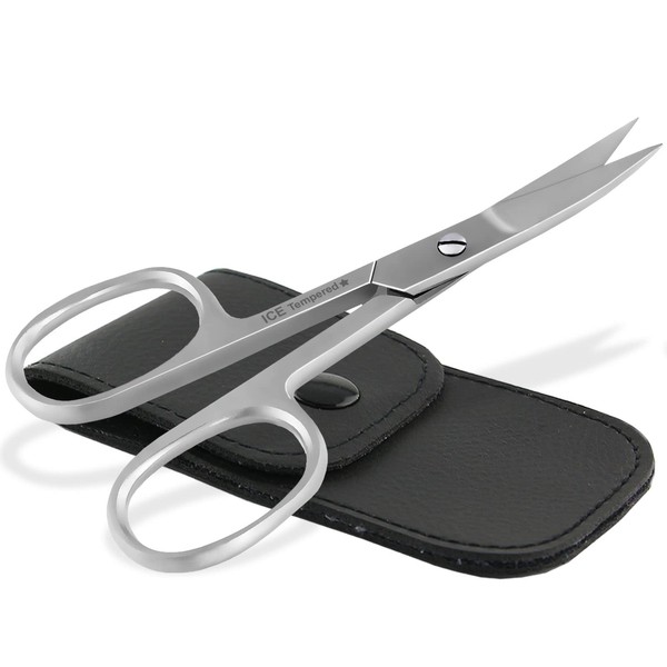 Left-handed nail scissors 9 cm with slightly curved cutting surface made of stainless steel with storage case – professional nail scissors with extra sharp cutting edges for precise cutting of finger and toenails.