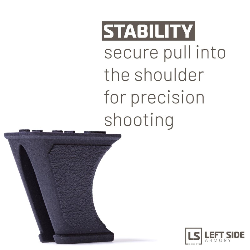 Left Side Armory's CrossBow Stabilizer made from superior material & design constructed from rugged and durable Nylon-12, this stabilizer ensures long-lasting resilience against everyday wear and tear. The solid one-piece construction guarantees stability, strength, and a seamless fit onto your crossbow. Unparalleled grip with scale texture, experience a custom texture that's not just for show. Our unique stippled texture is designed to provide a superior grip, ensuring your cross bow remains steady in your hands. This feature is crucial during rapid movements or when conditions become slippery. The thoughtfully designed front radius allows users to pull the crossbow securely into their shoulder pocket. This ergonomic feature enhances stability, accuracy, and comfort during extended periods of use. Proudly Made in the USA! Our commitment to quality is unwavering. Designed and manufactured in Coopersville, MI, USA, we take pride in offering a truly American-made product that meets the highest standards of craftsmanship. Every stabilizer comes with all the mounting hardware you'll need. The inclusion ensures a hassle-free installation experience, so you can get back to what you do best in no time. Lifetime Warranty - A Promise of Excellence At Left Side Armory, we believe in the enduring quality of our products. That's why we back this stabilizer with a lifetime warranty. Our promise is a testament to our confidence in the product's performance and durability. Enhance your shooting experience with Left Side Armory's CrossBow Stabilizer. Invest in an accessory that offers the perfect blend of functionality, durability, and style.