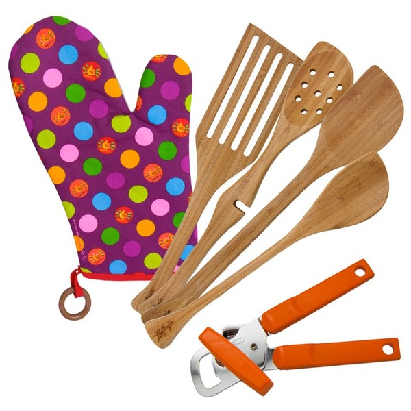 Lefty's Kitchen Tool Set Includes Left Handed Can Opener, Oven Mitt and 4 Bamboo Utensils, 6 Pcs.