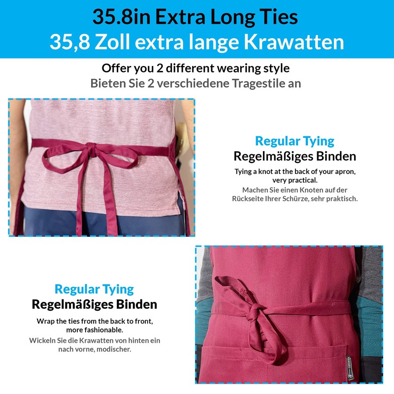 - Quality: Waterproof, comfortable, wrinkle resistant, high-quality apron, stylish, practical, durable, soft to the touch, free from harmful chemicals. Cleaning - Machine washable cold, can be tumble dried.