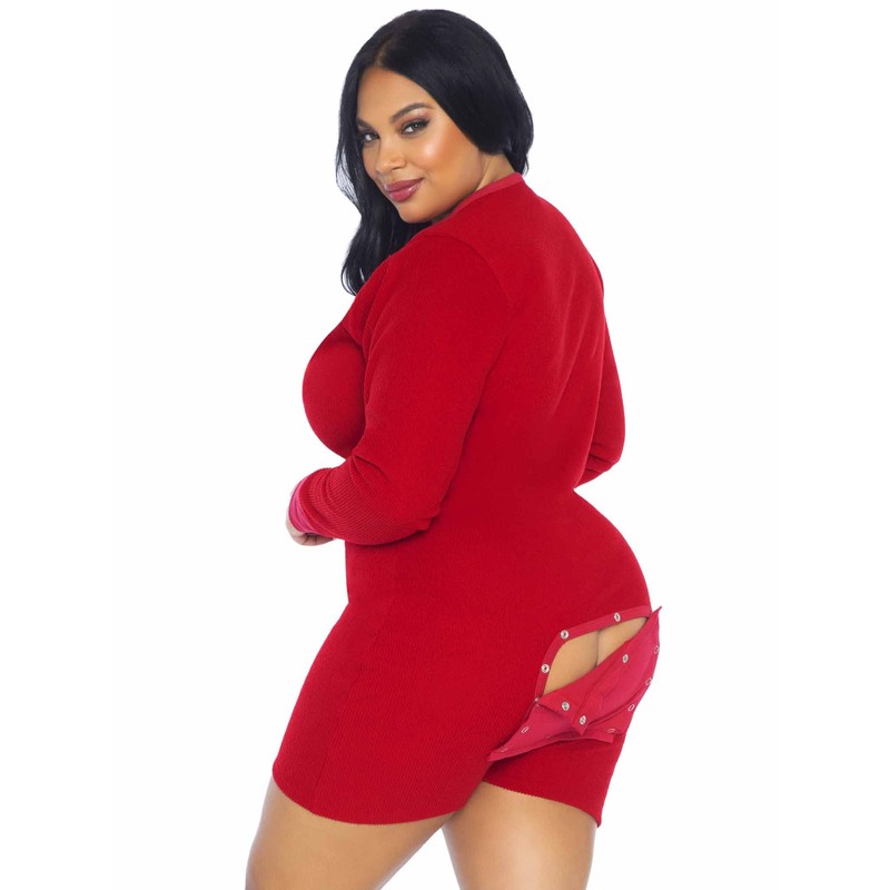 - Leg Avenue 86649X-00309 Brushed Rib Romper Long Johns With Cheeky Snap Closure Back Flap, 3X-4X, Red