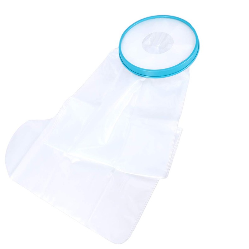 - Notice for leg shower protector: the top around the blue rim naturally collects a little bit of water when shower, so please either drain off by tipping the top a bit or use a towel to towel try before slipping off over your cast or bandage.