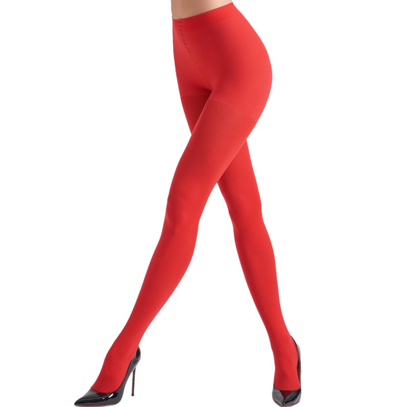 leg elegant Women's 80 Den Microfiber Soft Opaque Tights Pantyhose (Red, S/M)