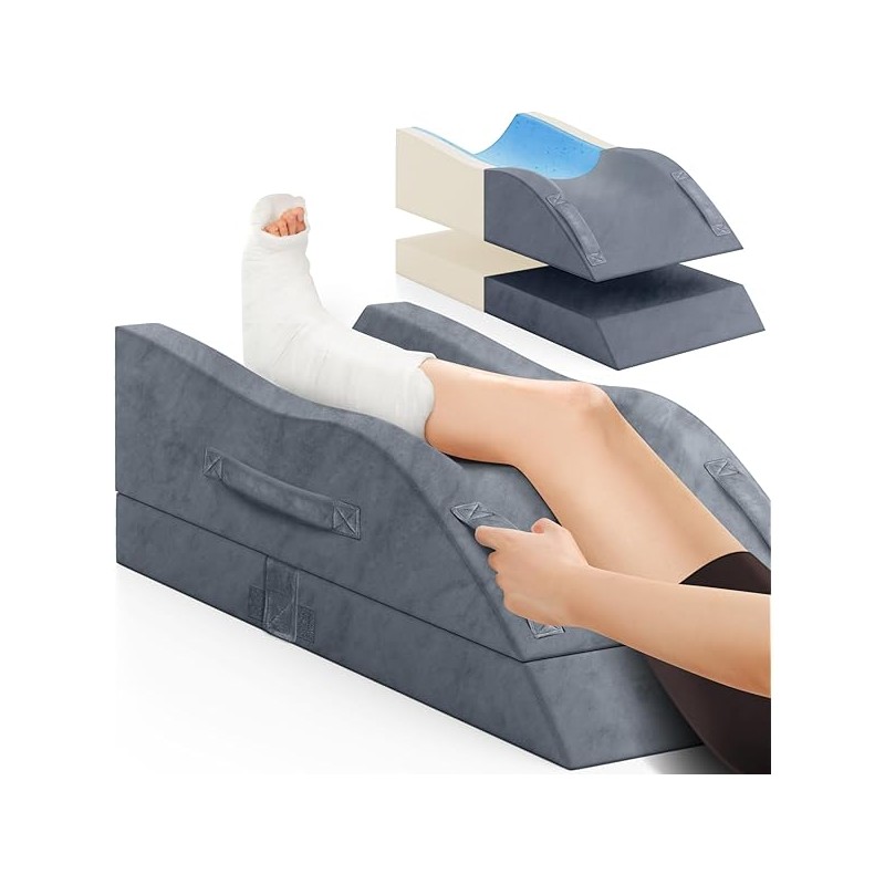 Leg Elevation Pillows, Wedge Pillow for After Surgery, Memory Foam Leg Support Adjustable, Comfort Care for Back Knee Hip Ankles Pain, Knee Pillow for Sleeping Blood Circulation Grey