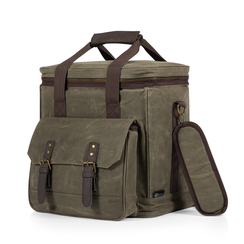 LEGACY - a Picnic Time Brand - Weekender Distressed Waxed Canvas 6 Bottle Insulated Wine Bag, Soft Cooler Wine Tote Bag, Wine Picnic Bag, (Khaki Green)