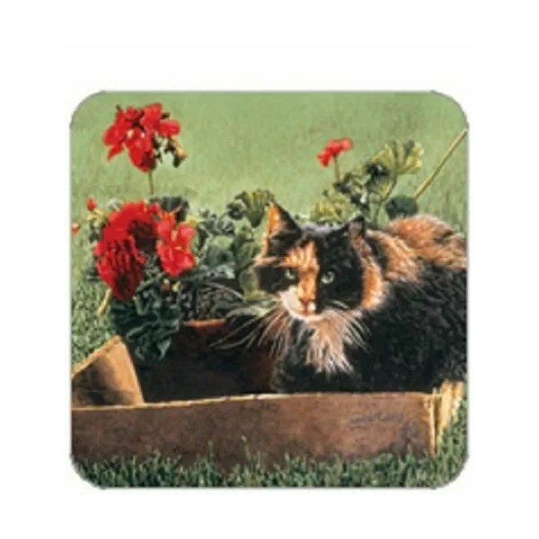 Legacy Cork Back Coaster-Cat Design-CALICO IN FLOWER BOX-Create Your Own Set!