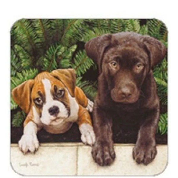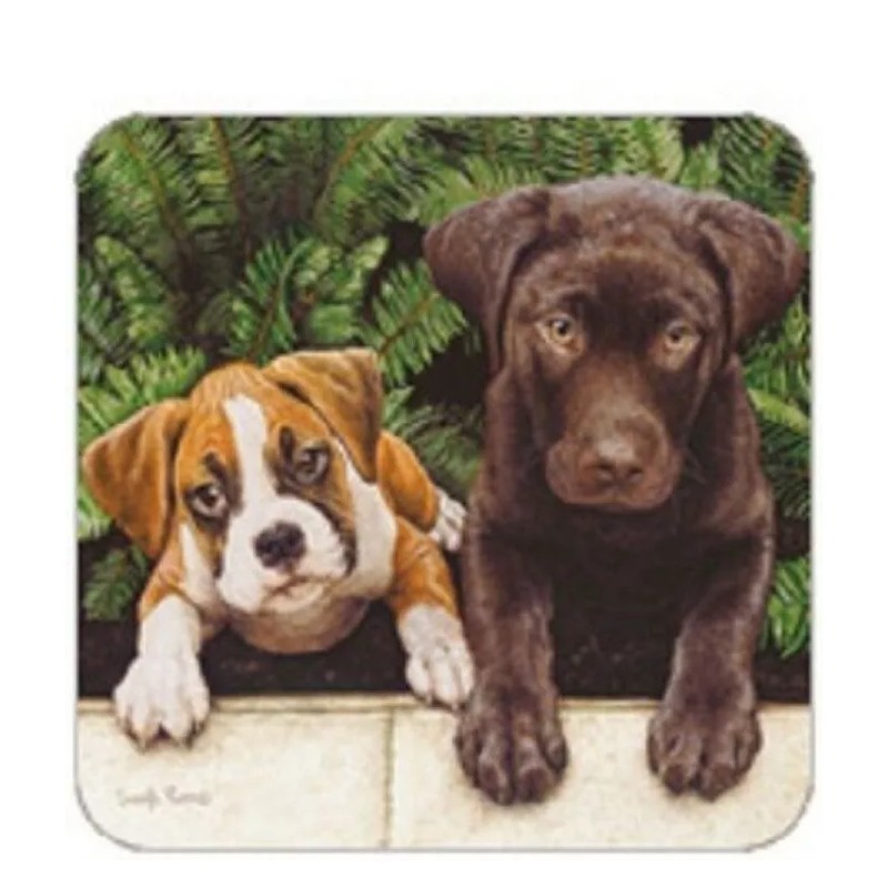 Legacy Cork Back Coaster-Dog Design BOXER & LAB PUPS-Create Your Own Set!