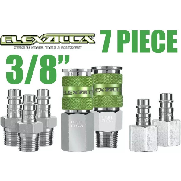 Legacy Manufacturing 7pc Legacy Flexzilla 3/8" Pro High Flow Air Hose Coupler Fitting Set A53657FZ