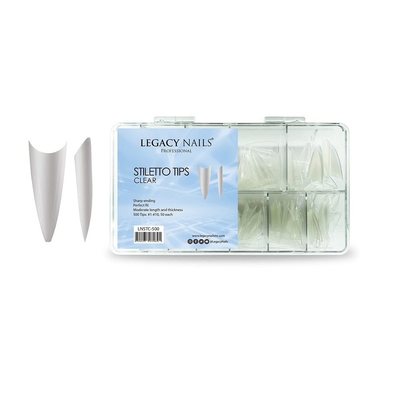 - Las puntas de uñas transparentes Legacy Nails son fáciles de aplicar, limar y recortar, y también proporcionan un aspecto natural y limpio a las uñas. Estas puntas de uñas son ideales tanto para especialistas profesionales de uñas como para estudiantes de arte de uñas, adecuadas para salones de uñas y arte de uñas en casa