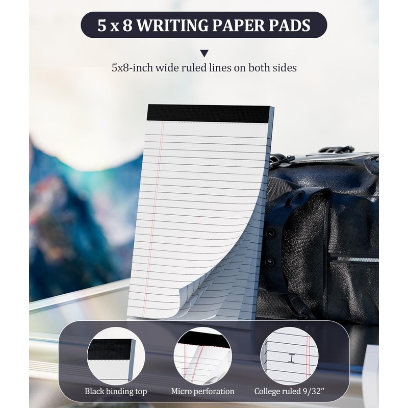 • 📄【PERFORATED LEGAL PADS】📄-- Perforated top enables pages be torn off cleanly and easily when in necessaries. Each sheets is bind by the sturdy glue. Therefore, the left pages will not take apart when tearing off from the micro perforated side. Handy and versatile 5 x 8 inches small size notepads are convenient to take with you on the go. Convenient to slip into your backpack or handbag without taking up much space.
