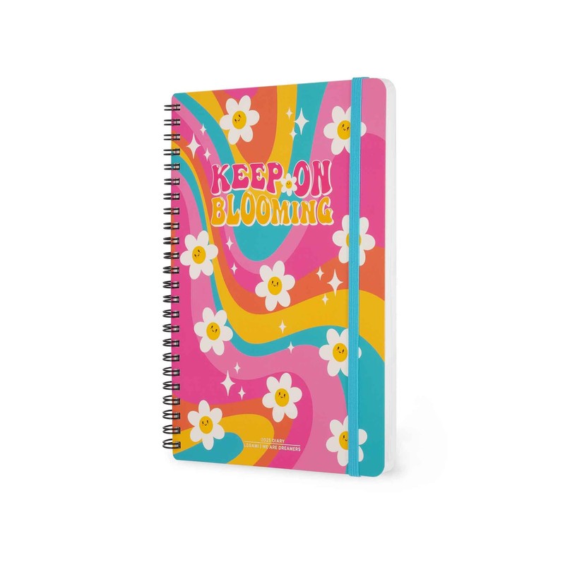 - To always move forward, you have to learn how to turn. And with the Legami 12-month weekly planner with spiral binding large with daisy motif, it's even easier! The sides slide quickly around the metal spiral and...taaac! It's already next week. Experience the comfort of the week on the large double page that allows you to go into detail or have an instant overview. And when it ends... let them go and run fast to the next.