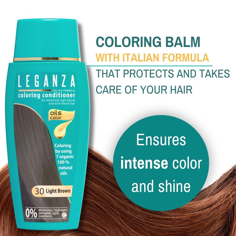 Leganza Hair Coloring Conditioner Natural Balm Color Light Brown Nº 30 | Enriched with 7 Natural Oils | Ammonia, PPD and Paraben Free | 150 ml
